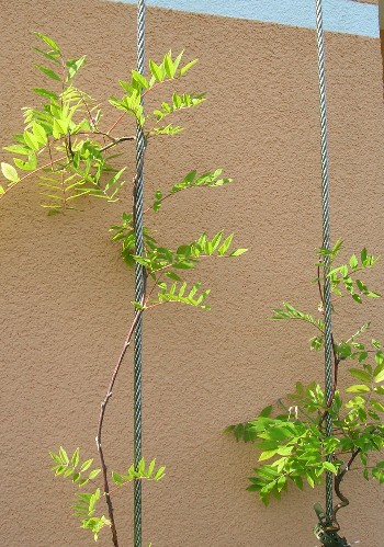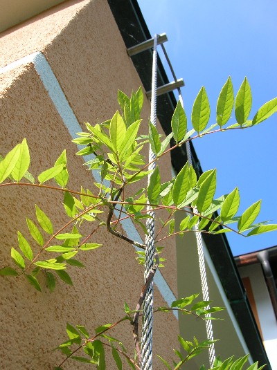 Drahtseile aus Edelstahl werden in der Fassadenbegrünung eingesetzt und rücken die Pflanze in den Mittelpunkt.