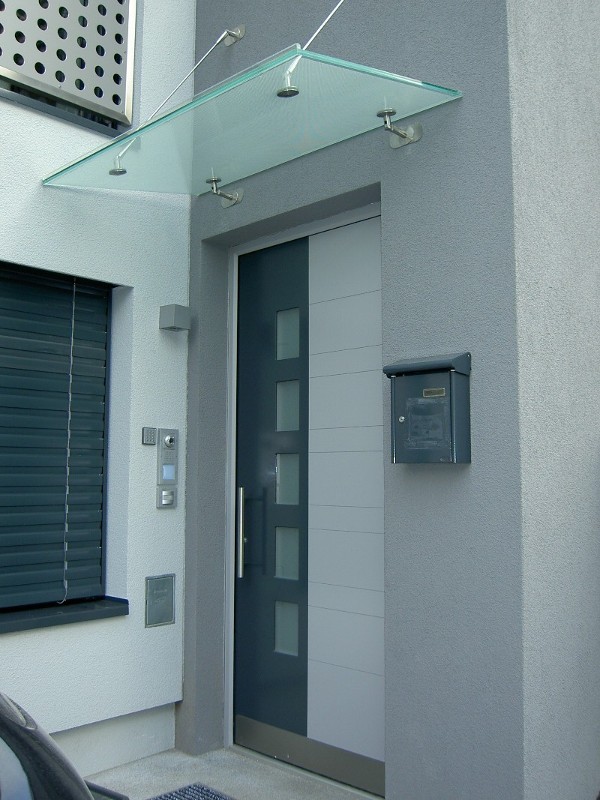Vordach, Carport, Buswartehaus, Garage, Hauseingang, Amtstafel, Vitrine, Glasvordach, Punkthalter, Regenschutz,